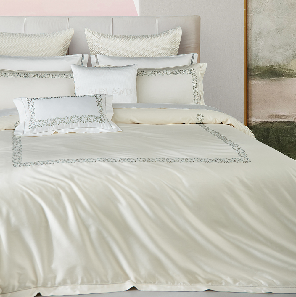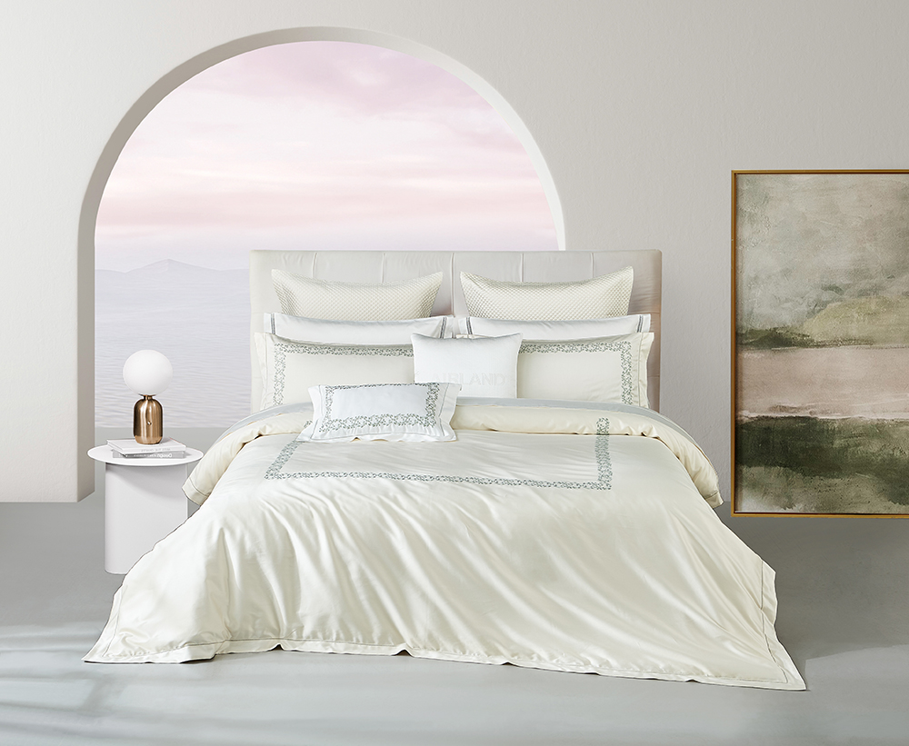 匹马棉产量有限,仅占全球棉产量3%左右,200S进口匹马棉,高支高密面料,更细腻、更软柔,棉毛透气性为普通棉的6倍,纤维长度比普通棉长出35%,纤维强韧度比普通棉高出45%,纤维活性比普通棉更高,卷曲的枝叶曼妙婉约,寓意生生不息,淡雅米白色,为空间增添柔和感。