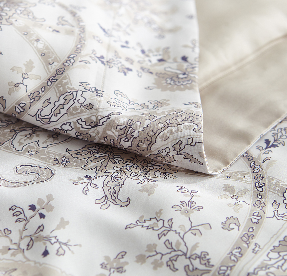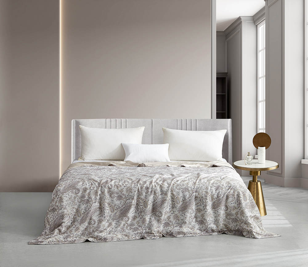 100%进口兰精天丝™莱赛尔纤维,顺滑的纤维结构,带来丝柔的亲肤体验,丝滑透汽,触摸生凉意,凉而不冰,尤其适合夏天。欧式佩兹利纹,寓意浪漫、幸福、美好,花纹赋予古典灵气,洋溢着柔和与美妙之感,柔和棕咖色,象征守护和希望,精致之上,艺术感升华。
