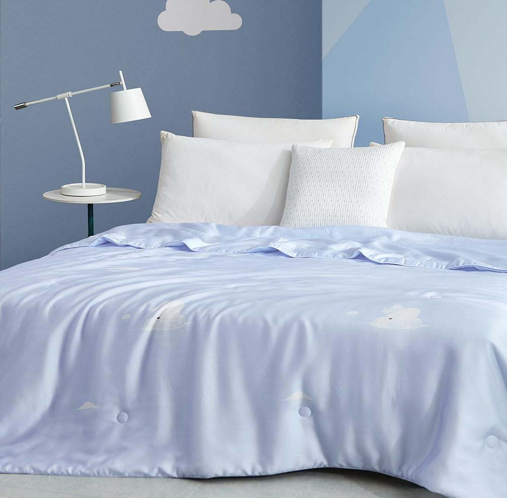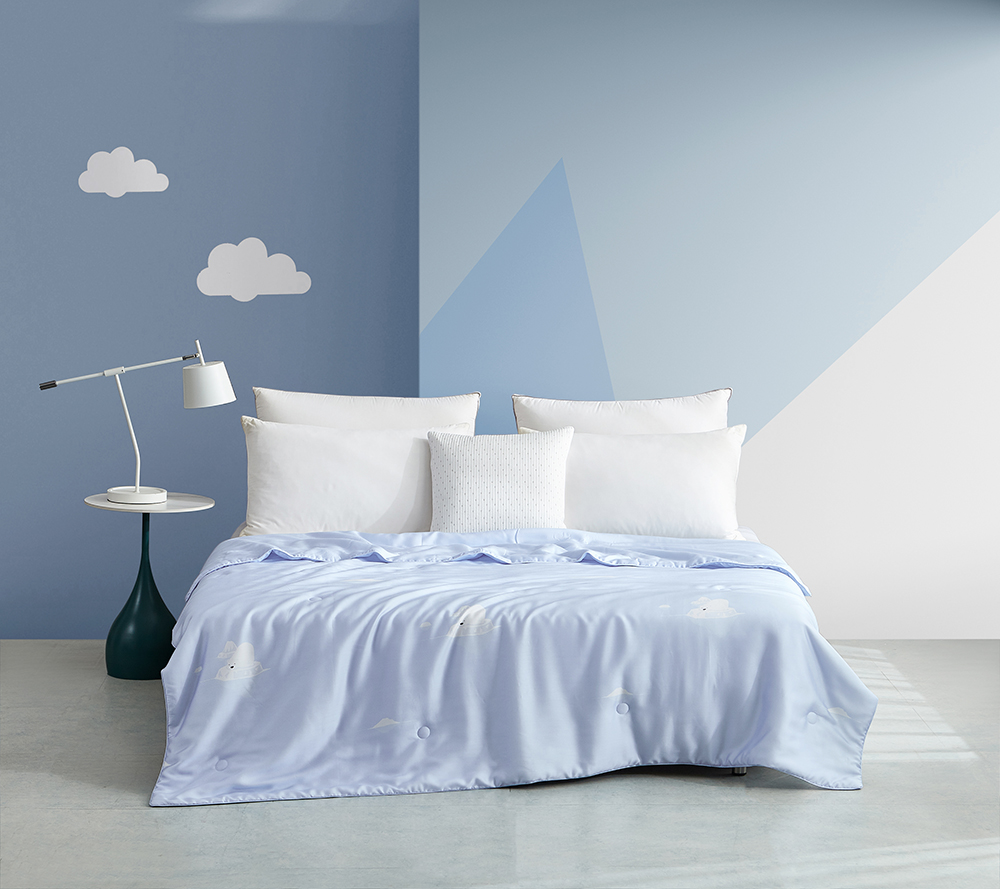100%进口兰精天丝™莱赛尔纤维面料,柔滑垂凉,贴身舒适,填充抗菌棉,减少细菌滋生,呵护健康睡眠。 蓝色,象征海洋与天空,营造无拘无束、自在放松的睡眠氛围,犹如徜徉自然乐园。