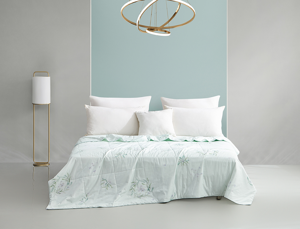 100%阳光好棉,吸湿排汗,耐洗耐用,浅绿素净,淡白雅致,花草蜻蜓于空中起舞,大自然的鲜活生动尽览无遗,虚实相生,畅享自然美眠。